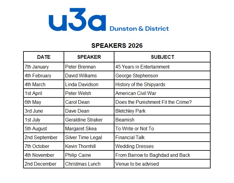 Speakers have been arranged right thorough until the end of 2026, and details of future meetings and speakers can be found for 2026 below.